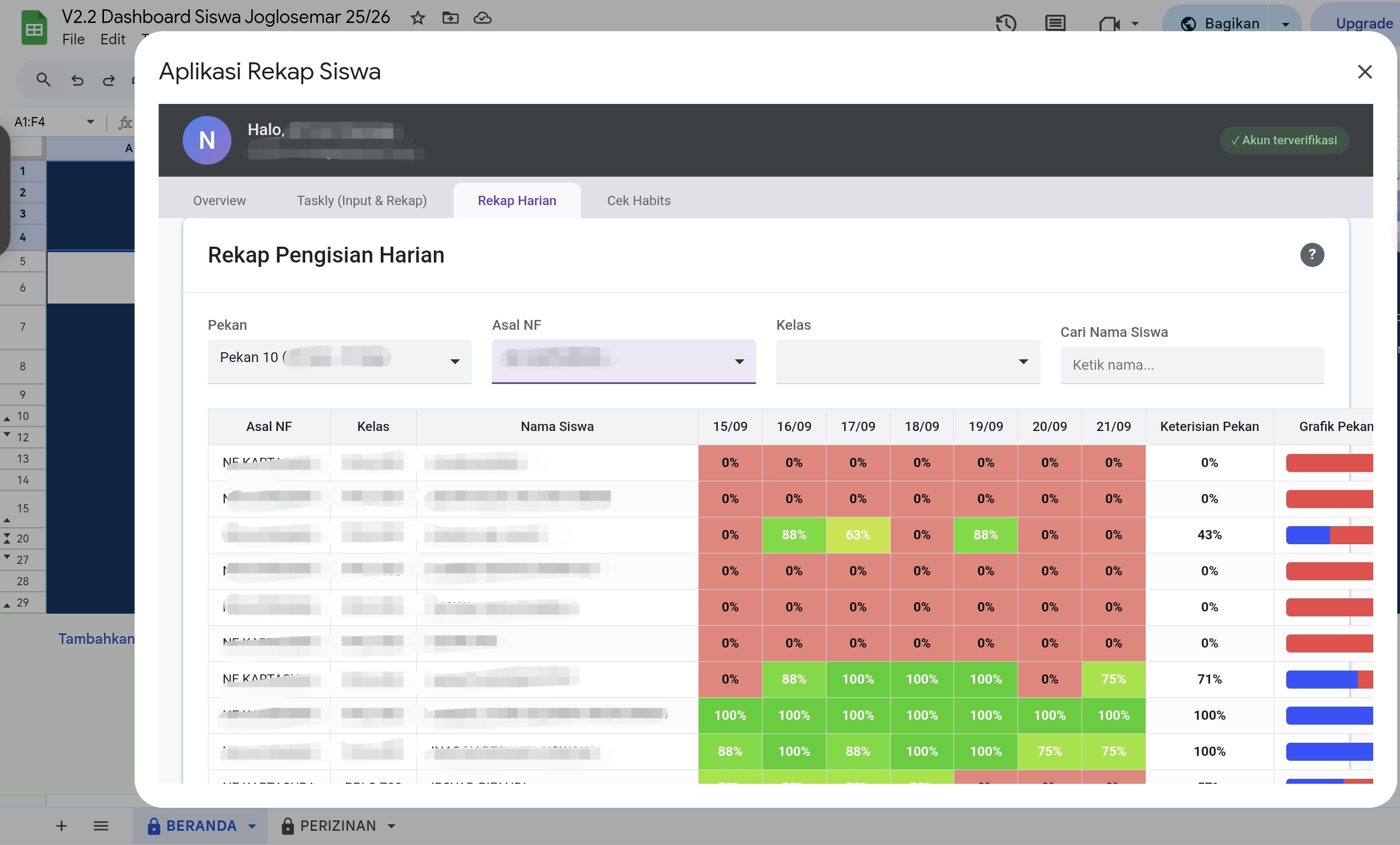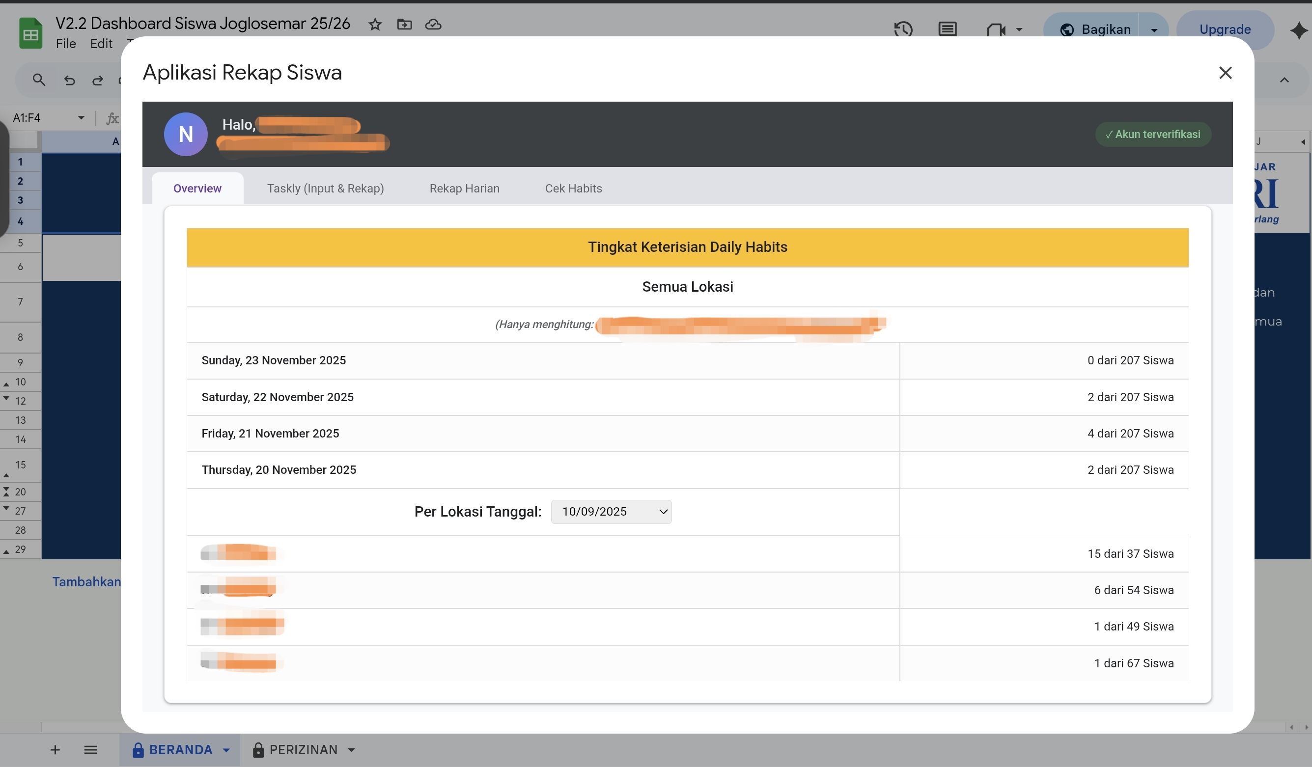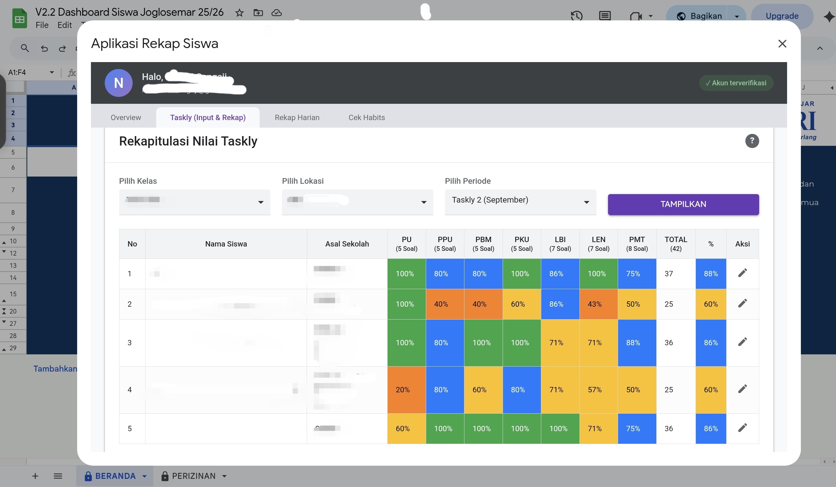 Saya membangun tools kerja dengan memadukan Google Form, Spreadsheet dan Script dengan menggunakan formula kompleks dan menyajikan data yang dibutuhkan.